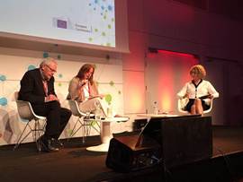 Natalia González Hereza, directora gerente de la Agencia Andaluza de la Energía, ha sido la encargada de representar a la Junta de Andalucía en la sesión sobre Especialización Inteligente, explicando cómo, a través de la elaboración de la Estrategia de Especialización Inteligente de Andalucía (RIS3), coordinada desde la Agencia IDEA y en la que también participó la Agencia Andaluza de la Energía, surgió la identificación de los sectores con mayores ventajas competitivas, y sobre los que se debía trabajar, “como las áreas vinculadas con la construcción sostenible, incluyendo la industria de los materiales, la integración de las energías renovables en la red y la generación distribuida y la eficiencia energética en ciudades y actividades productivas. A partir de ese instante, todas ellas tienen carácter prioritario en el desarrollo de nuestras políticas y están alineadas con los instrumentos de planificación de nuestro Gobierno”.