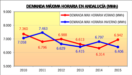 El máximo histórico de verano en Andalucía se mantiene en 7.360 MWh alcanzados el 11 de agosto de 2010 de 14.00 a 15.00 horas.