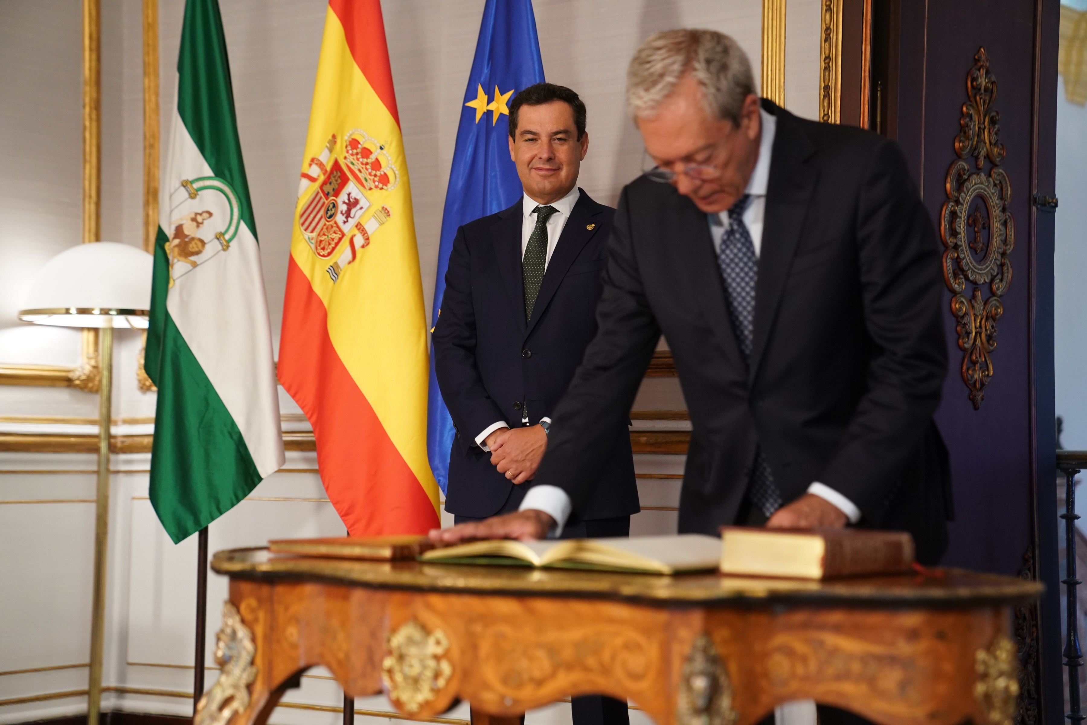 Rogelio Velasco ha tomado posesión de la cartera de Transformación Económica, Industria, Conocimiento y Universidad en un acto que ha presidido Juanma Moreno. La cartera de Velasco queda renombrada con esa denominación tras asumir las competencias en materia de actividades industriales y mineras.