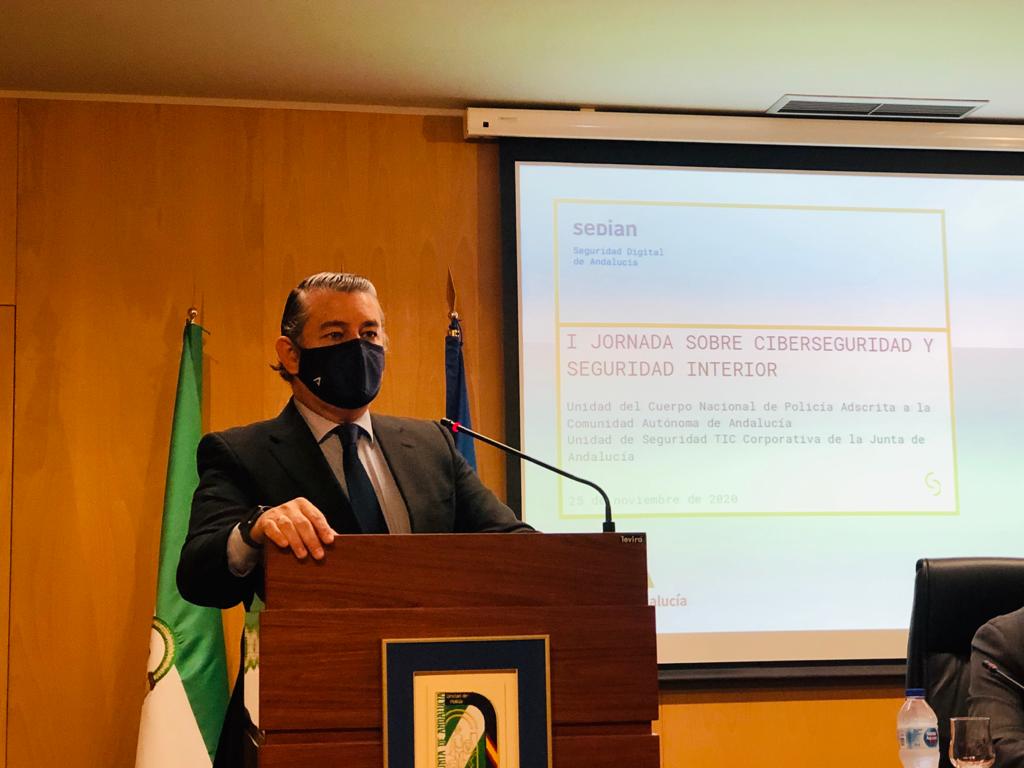 El viceconsejero de la Presidencia, Administración Pública e Interior de la Junta de Andalucía, Antonio Sanz, ha inaugurado este miércoles en Sevilla la I Jornada sobre Ciberseguridad y Seguridad Interior, destinada para los jefes provinciales de la Unidad de Policía Adscrita a la Comunidad Autónoma de Andalucía y pionera en la formación policial en esta materia, organizadas por la Dirección General de Estrategia Digital y Gobierno Abierto.