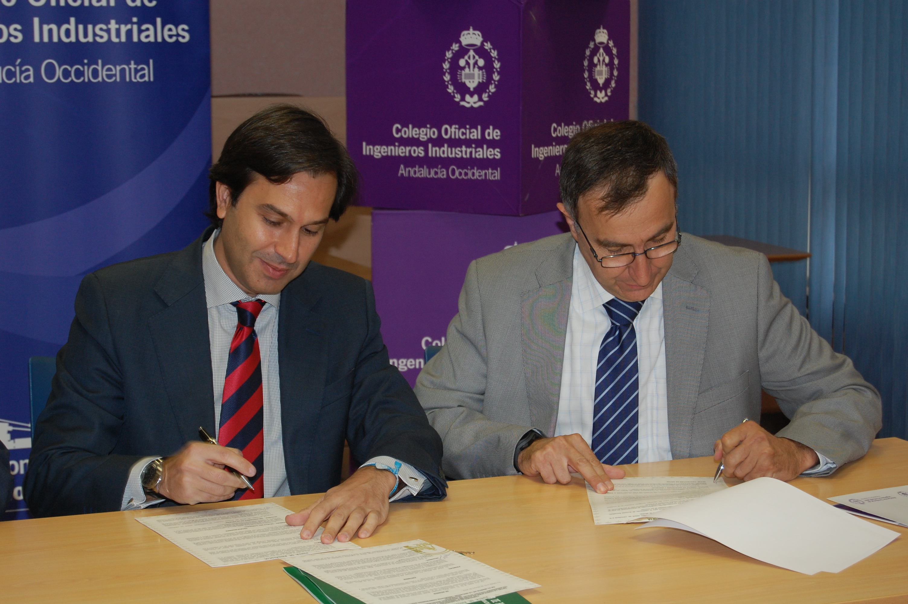 El secretario general de Innovación y Sociedad de la Información de la Consejería de Economía, Innovación y Ciencia, Juan María González, ha firmado un convenio de colaboración con el decano del Colegio Oficial de Ingenieros Industriales de Andalucía Occidental, Aurelio Azaña, para la incorporación de esta entidad como colaboradora del programa Andalucía Compromiso Digital.