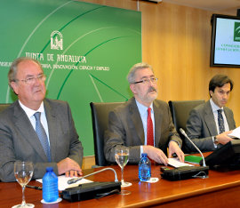 En rueda de prensa con el presidente de la Asociación de Promotores y Productores de Energías Renovables, Mariano Barroso, el consejero andaluz ha denunciado que esta norma “vuelve a ser un paso atrás en materia de compromiso con el medio ambiente y un desarrollo sostenible” ya que perjudica a las energías renovables con el tributo homogéneo. “No es lo mismo gravar un proyecto que lleva 30 años funcionando y que está amortizado, que gravar un proyecto con dos años de funcionamiento”, ha explicado el consejero, quien ha lamentado que el Gobierno de Mariano Rajoy ponga en peligro el cumplimiento de los compromisos nacionales en esta materia, cifrados en un 20% de aportación de las fuentes renovables al consumo total de energía de la UE y el 20% de ahorro de energía en 2020.
