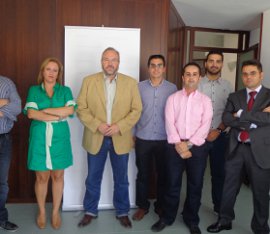 El delegado territorial, Manuel Gabriel Pérez, con el gerente de Inndetec, Juan Manuel Alonso y la plantilla de Inndetec.