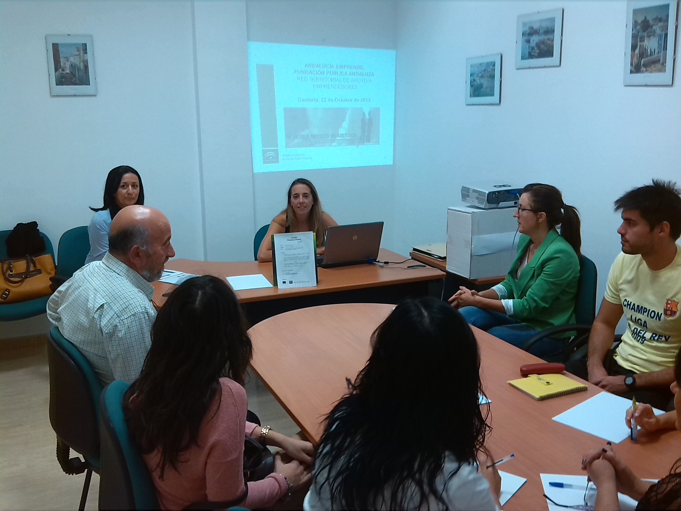 Técnicas del CADE de Cantoria y de la Agencia IDEA informan sobre propiedad industrial a un grupo de emprendedores cantorianos.