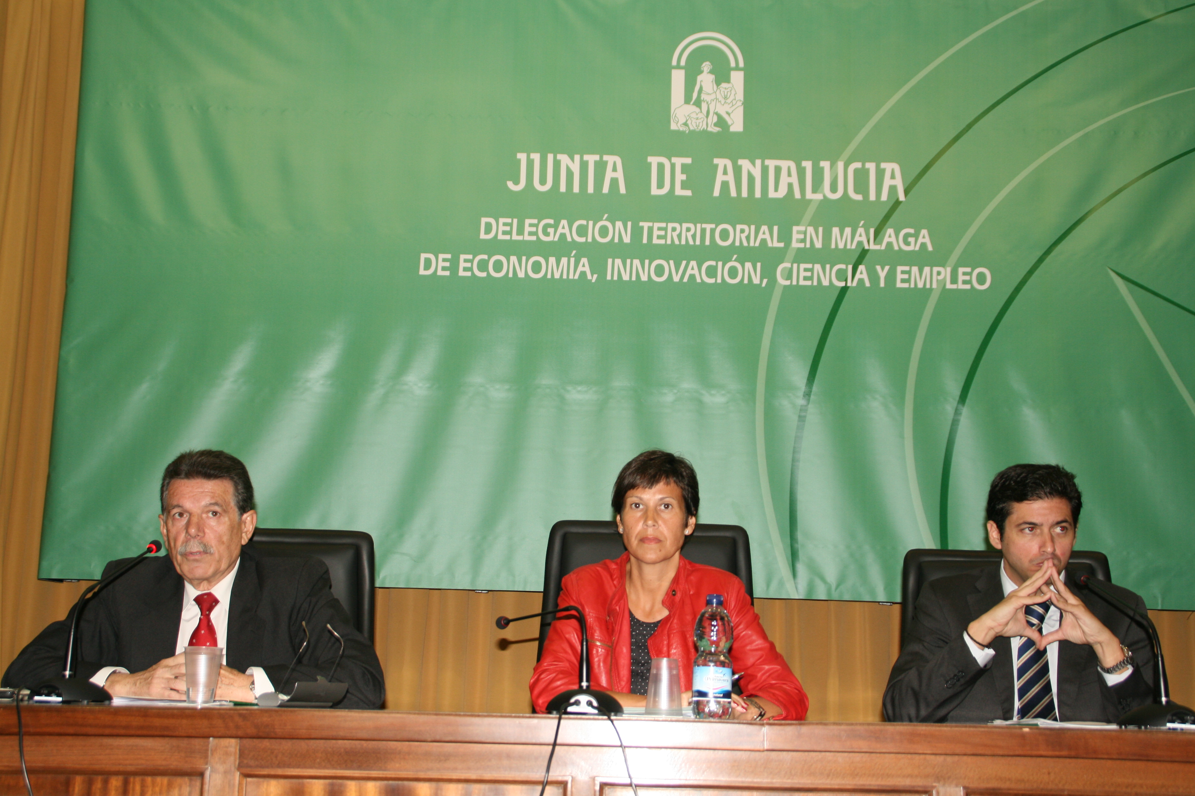 La delegada de Economía, Marta Rueda; el presidente de ASIT, Juan Fernández; y el director de la Agencia Andaluza de la Energía, Rafael Márquez.