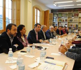 El consejero de Economía, José Sánchez Maldonado, en el encuentro celebrado con alcales onubenses.