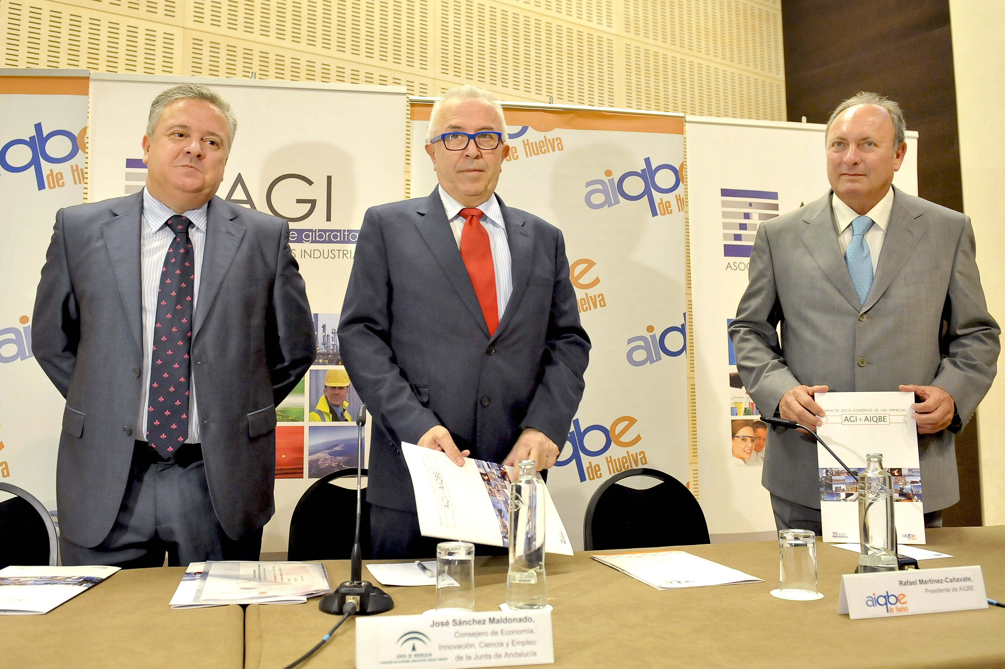 El consejero de Economía destaca el peso de las industrias de Huelva y el Campo de Gibraltar en la presentación de los resultados de AGI y AIQBE