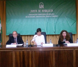 De dcha a izda Eugenio Muñoz, director de FREMAP, Marta Rueda, delegada de Economía, Innovación, Ciencia y Empleo, y Encarnación del Aguila, Directora del Centro de Prenvencion de Riesgos Laborales de Málaga.