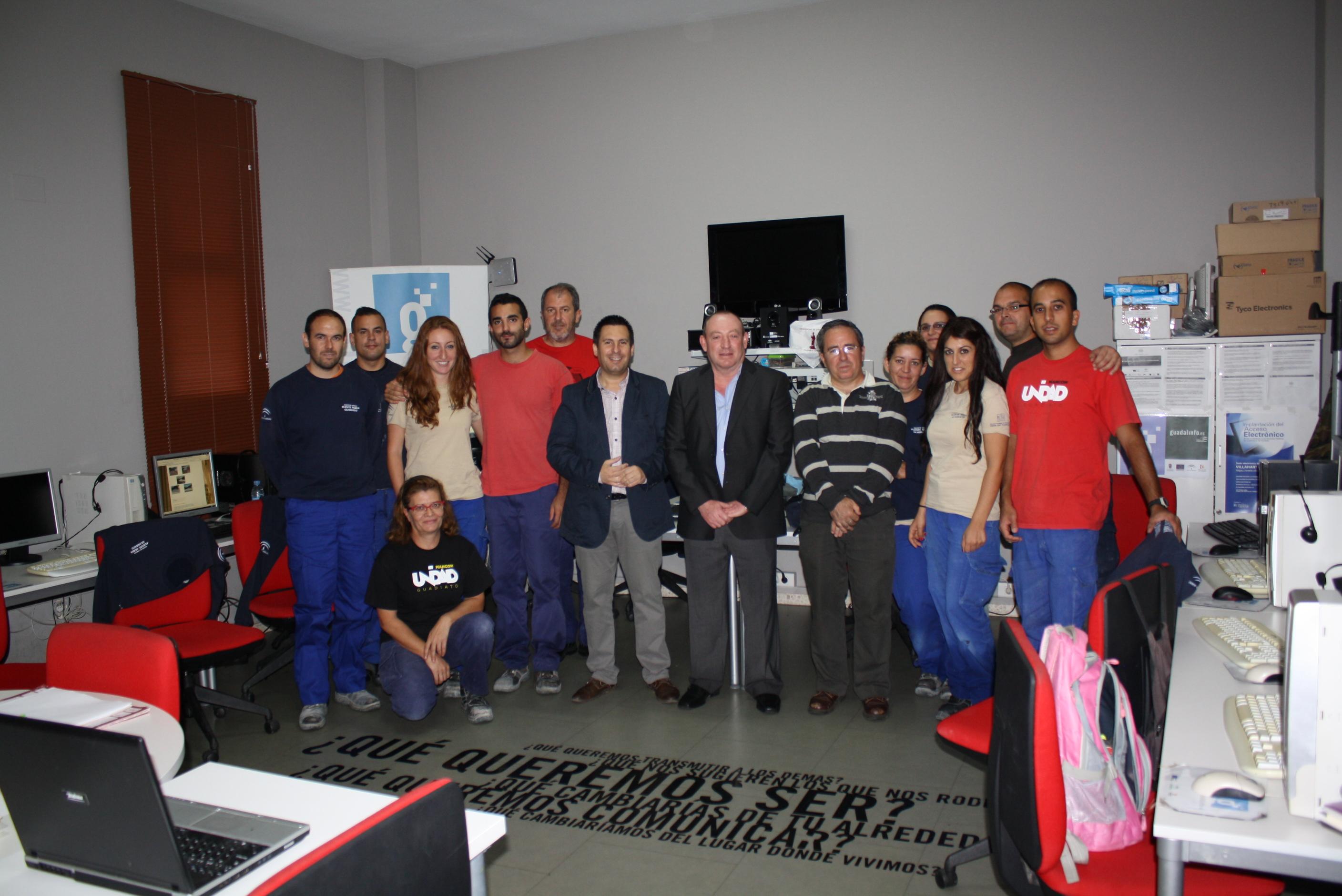 El delegado de Economía, Innovación, Ciencia y Empleo, José Ignacio Expósito, con usuarios y técnicos del Guadalinfo.