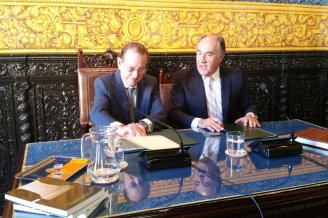 El consejero, con el alcalde de Algeciras, en la firma del protocolo