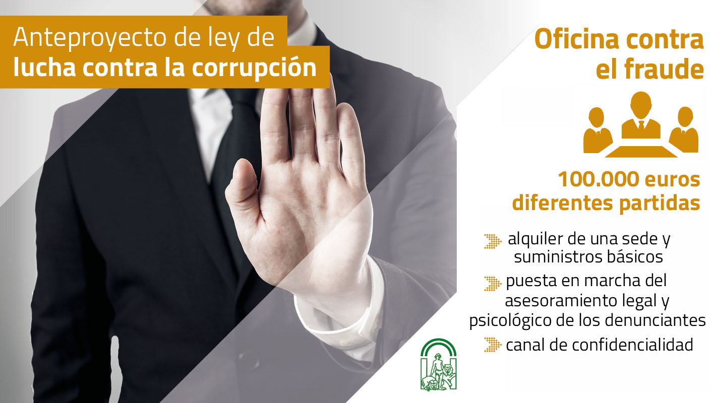 El vicepresidente de la Junta de Andalucia y consejero de Turismo, Regeneración, Justicia y Administración Local, Juan Marín, ha informado en el Parlamento de que el proyecto de Presupuesto para 2020 recoge medidas que permitirán iniciar el funcionamiento de la Oficina contra el Fraude y la Corrupción. Entre ellas, ha señalado “el alquiler de una sede y sus suministros básicos, la puesta en marcha del asesoramiento legal y psicológico de las personas denunciantes y los cimientos del canal de confidencialidad que permitirá presentar denuncias con las máximas garantías”. En total serán 100.000 euros en diferentes partidas presupuestarias.