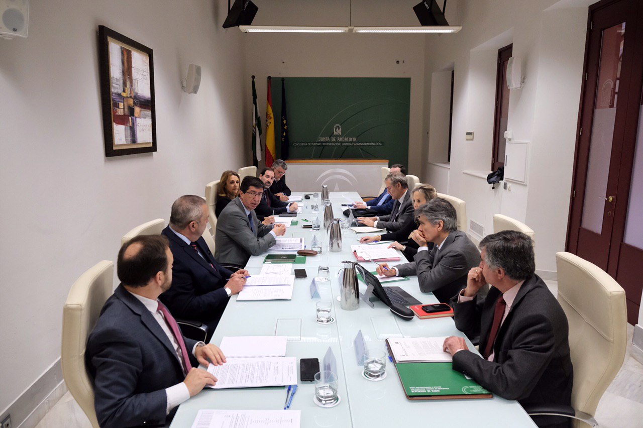 El vicepresidente de la Junta y consejero de Justicia ha presidido hoy la reunión de la Comisión Mixta entre la Junta de Andalucía y la Fiscalía Superior de la Comunidad que ha tenido lugar en la sede de la Consejería en Sevilla, después de que el pasado mes de junio se mantuviera un primer encuentro en Granada. “En esa primera reunión tuvimos la oportunidad de conocer de primera mano las necesidades de la Fiscalía para desarrollar mejor su trabajo y una de esas reivindicaciones fue incorporar funcionarios”, ha señalado.