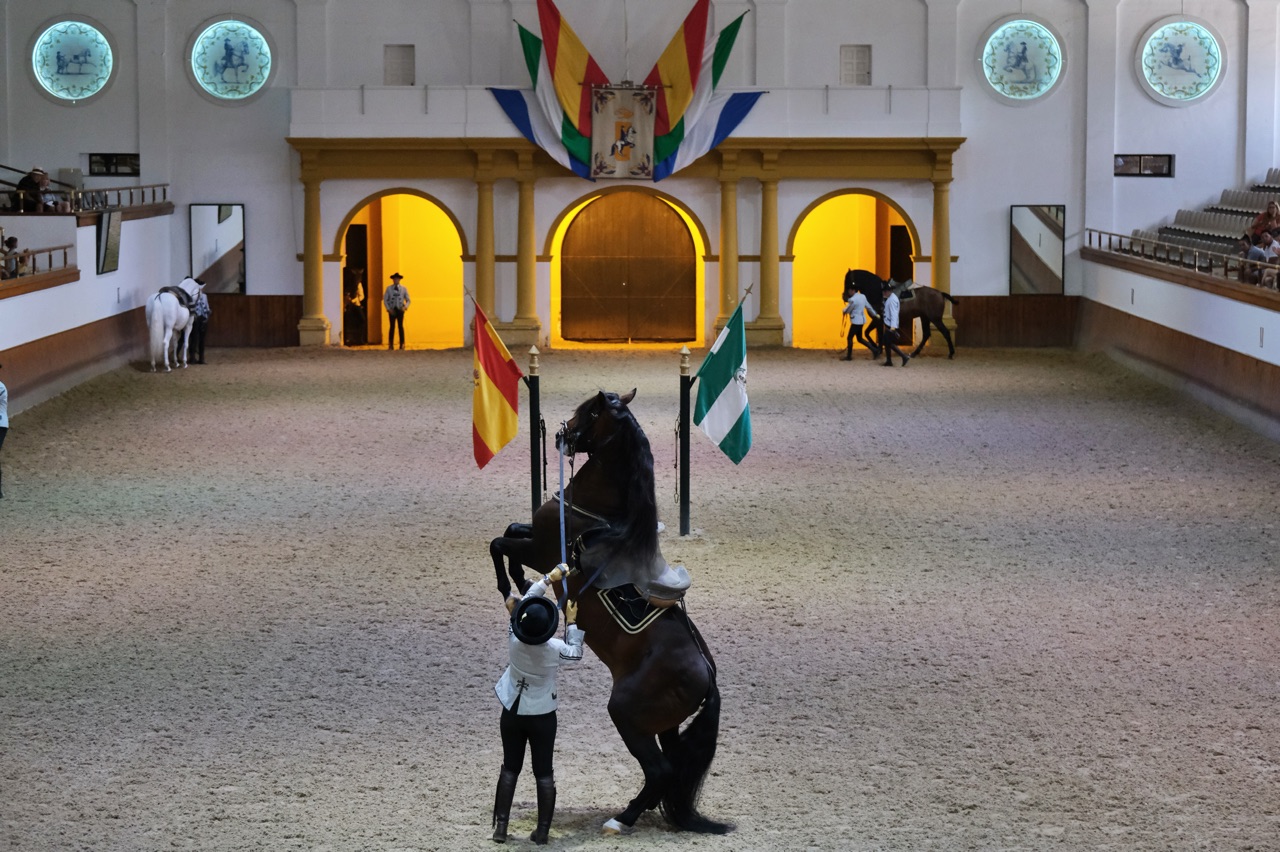 ‘Cómo Bailan los Caballos Andaluces’ es un auténtico ballet ecuestre con música netamente española y vestuario a la usanza del siglo XVIII. Está montado sobre coreografías extraídas de las reprises de la doma clásica y vaquera, así como de otros trabajos de la equitación tradicional. En cada representación se realizan de 6 a 8 coreografías, manteniendo todas ellas un alto nivel de espectacularidad.