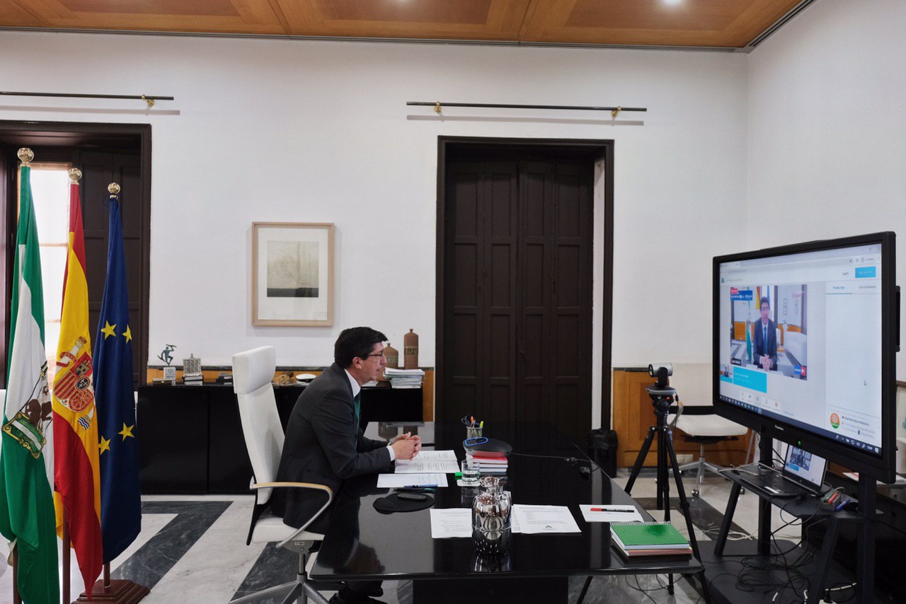 El vicepresidente de la Junta de Andalucía y consejero de Turismo, Regeneración, Justicia y Administración Local, Juan Marín, ha participado hoy en un Foro de la Fundación Cámara de Sevilla. En su intervención ha destacado el trabajo del Gobierno andaluz durante la crisis sanitaria por el coronavirus. “Nuestro trabajo ha sido intenso, la prioridad era salvar vidas y ahora también salvar empresas, avanzar en el binomio salud y economía. El trabajo de nuestra Sanidad es lo que ha dado un valor añadido a la marca Andalucía”, ha asegurado Marín.