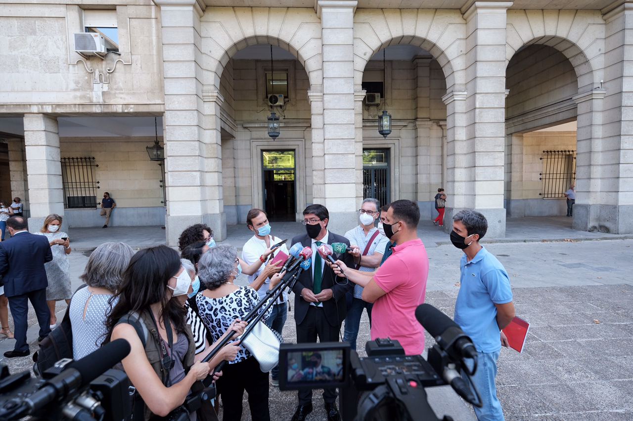 Juan Marín atiende a los medios tras la visita a los nuevos juzgados de Sevilla