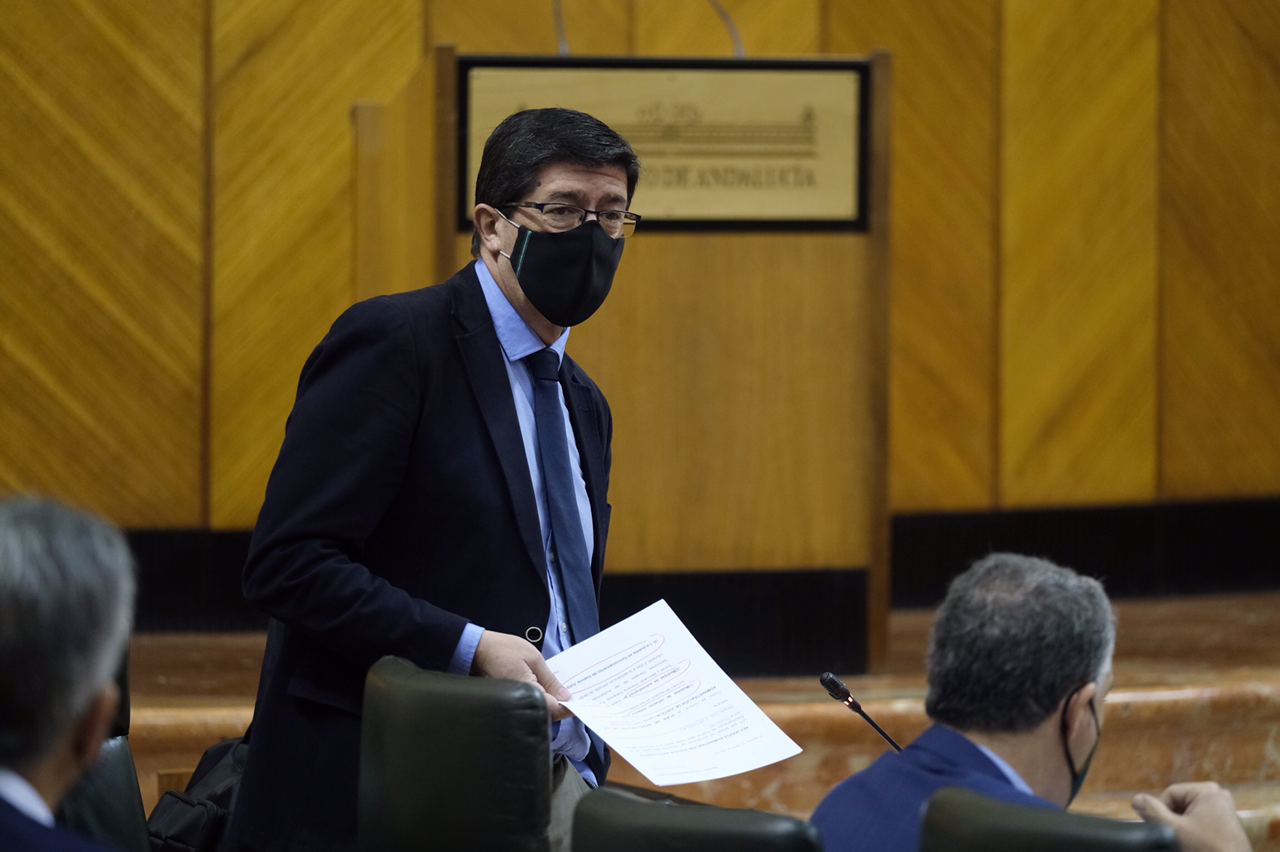 Juan Marín durante su intervención en sesión plenaria del Parlamento andaluz