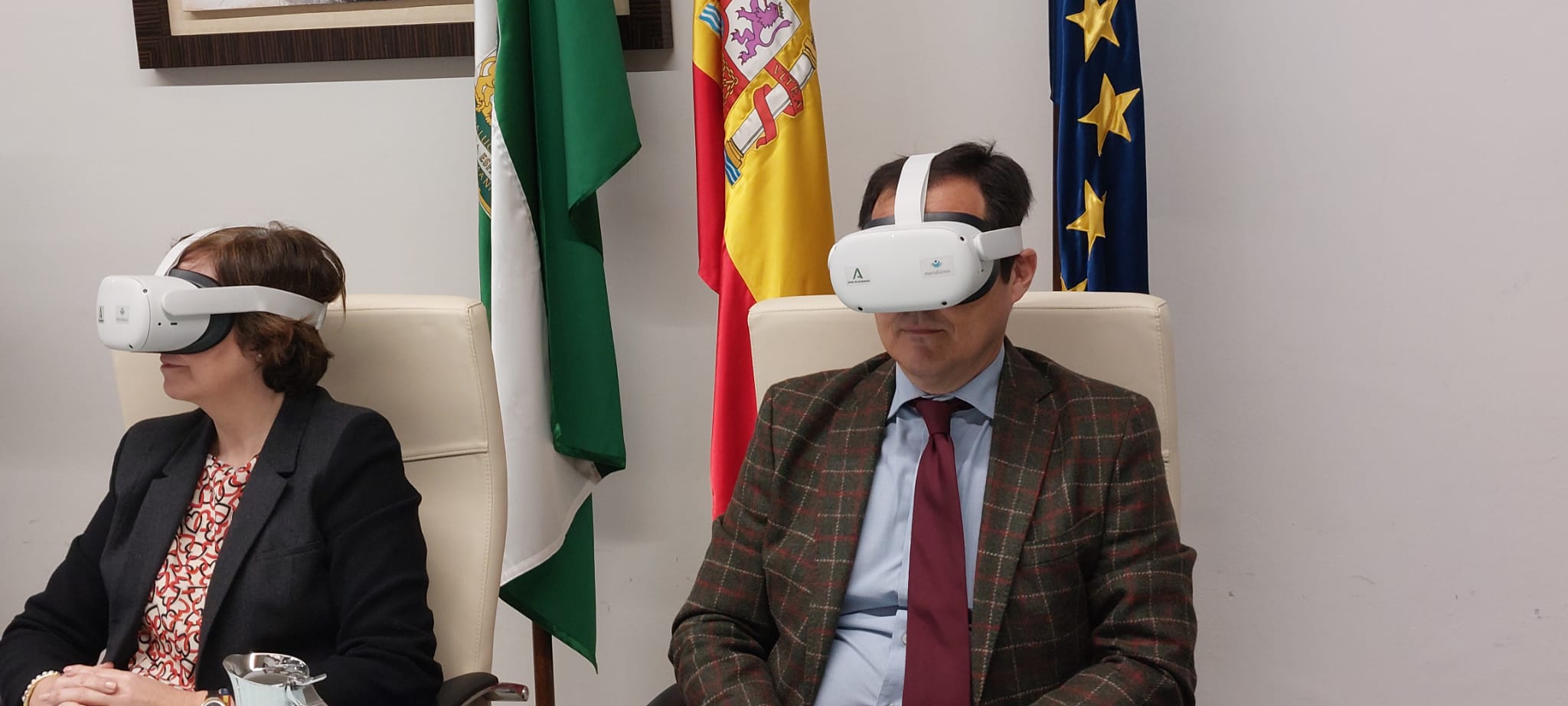 Tres de los jóvenes que han participado en el proyecto han viajado a Sevilla, junto a la delegada territorial de Justicia, Rebeca Gómez, el director del CIMI, Daniel Cuadra, un monitor y una educadora del mismo, para enseñarle personalmente al consejero el resultado. Nieto ha disfrutado de la experiencia inmersiva de recorrer las diferentes estancias del Castillo de Vélez-Blanco y ha felicitado a los jóvenes por el trabajo realizado, fruto de un convenio de colaboración con el Ayuntamiento de Vélez-Blanco para la recreación virtual de los principales monumentos del municipio.