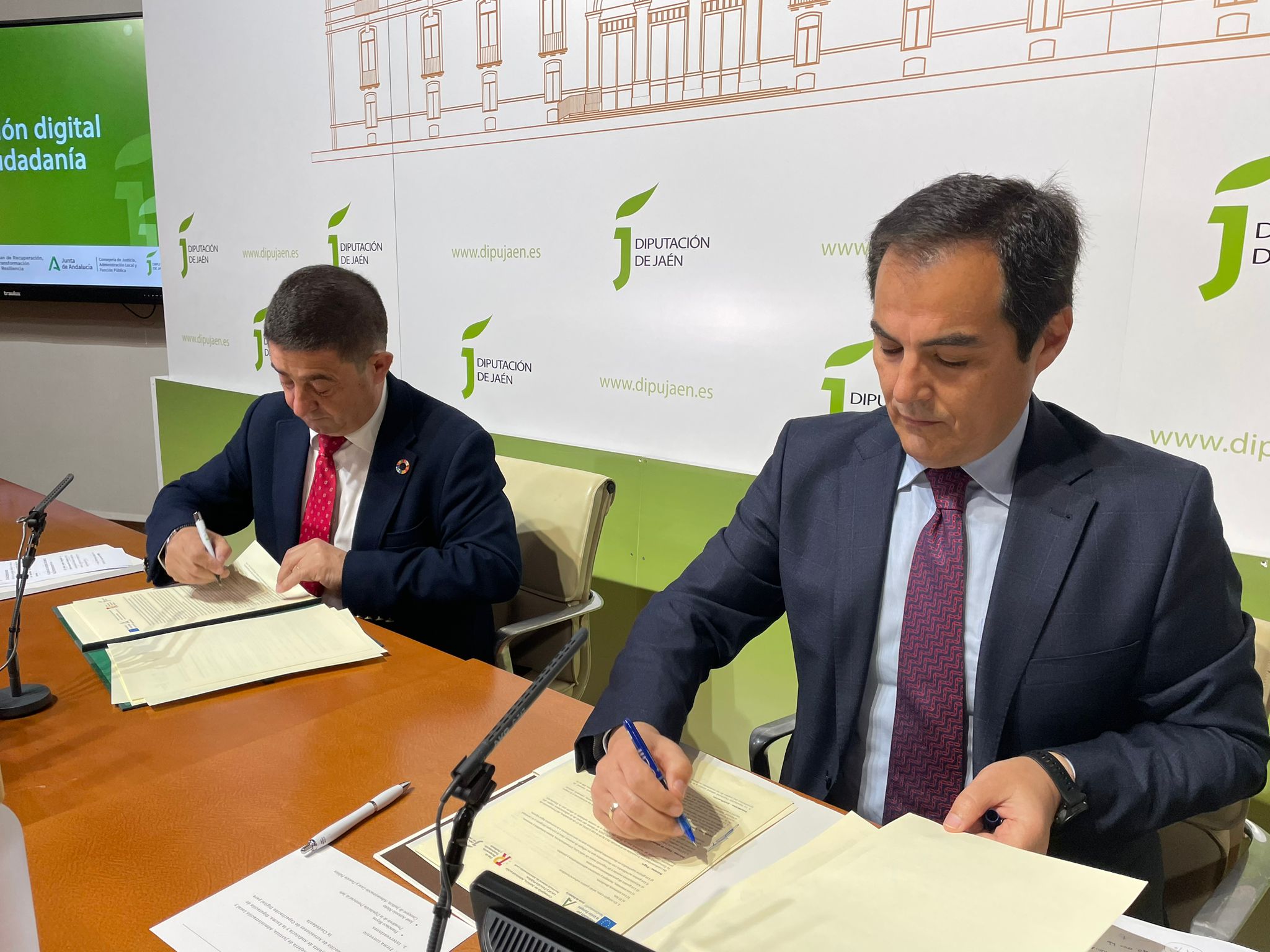 El consejero de Justicia, Administración Local y Función Pública, José Antonio Nieto, y el presidente de la Diputación de Jaén, Francisco Reyes, han defendido hoy la importancia de generar oportunidades en el medio rural para evitar la despoblación y ello requiere formar a los vecinos en capacidades para desenvolverse en el mundo digital. Para ello, ambas instituciones colaborarán en el desarrollo de cursos en habilidades digitales para unos 7.000 vecinos de municipios de menos de 20.000 habitantes.