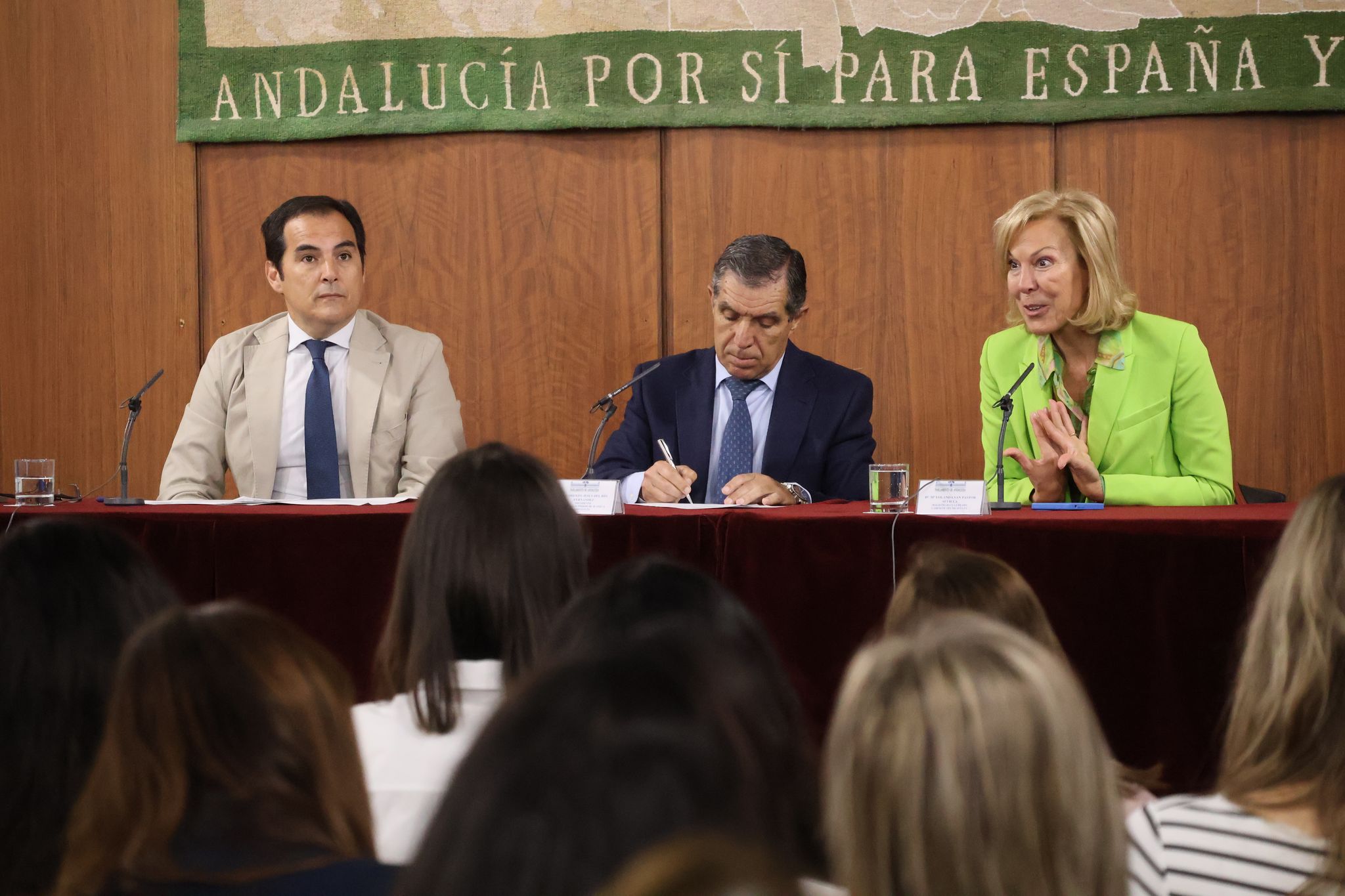El consejero de Justicia, Administración Local y Función Pública, José Antonio Nieto, y el presidente del Tribunal Superior de Justicia de Andalucía (TSJA), Lorenzo del Río, han inaugurado hoy en el Parlamento andaluz un curso que, durante dos días, reúne a 40 magistrados para abordar cómo garantizar que las personas con discapacidad puedan participar en los medios alternativos de resolución de controversias, como los procesos de mediación, con todas las garantías a sus derechos y en igualdad de condiciones. Para ello, la Junta de Andalucía ha creado la figura de los facilitadores destinada a acompañar durante cualquier proceso judicial a personas con problemas de comprensión.