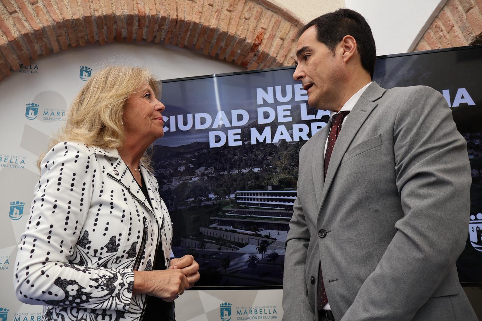 El consejero, con la alcaldesa de Marbella, en la presentación del estudio de implantación de la Ciudad de la Justicia.