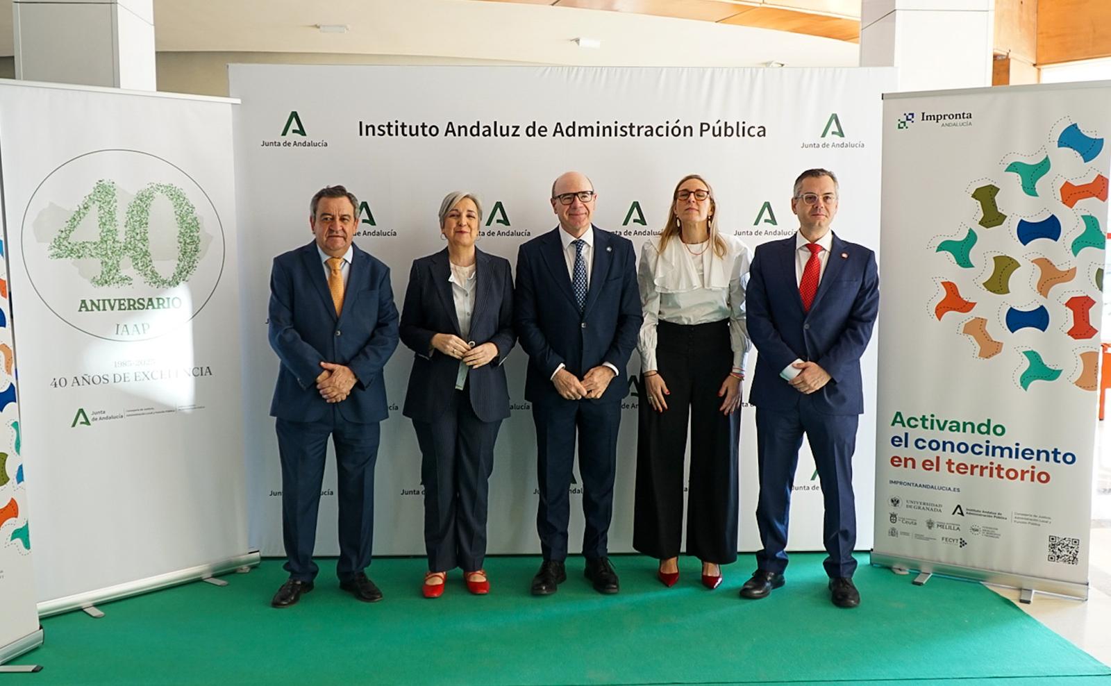 El Instituto Andaluz de Administración Pública (IAAP) ha acogido hoy el I Encuentro Impronta Andalucía que conecta universidades y centros de investigación con la Junta de Andalucía, con la colaboración de la Federación Andaluza de Municipios y Provincias (FAMP). El objetivo es generar un marco de colaboración que permita avanzar en el desarrollo de políticas públicas informadas por el conocimiento científico, de la mano de la ciudadanía y del tejido empresarial, mediante un enfoque de cuádruple hélice. Surge de un proyecto financiado por FECYT en su primera convocatoria de innovación pública y inspirado por el modelo Impronta Granada.