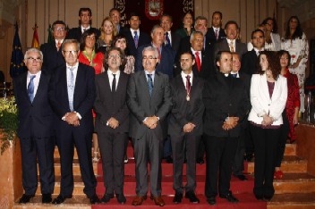 El consejero con los premiados por el ayuntamiento.