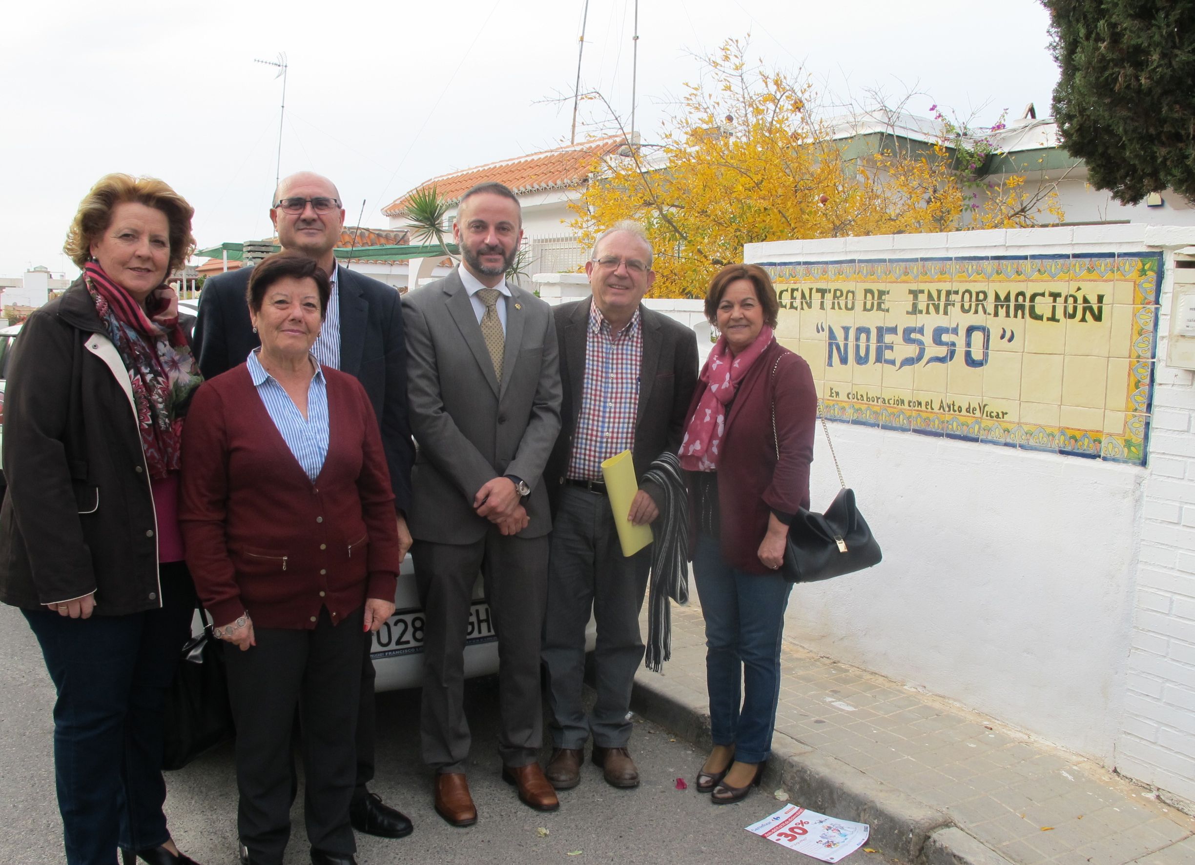 el delegado territorial junto al alcalde de Vícar, dos concejales, la presidenta y el director de la Asociación Noesso