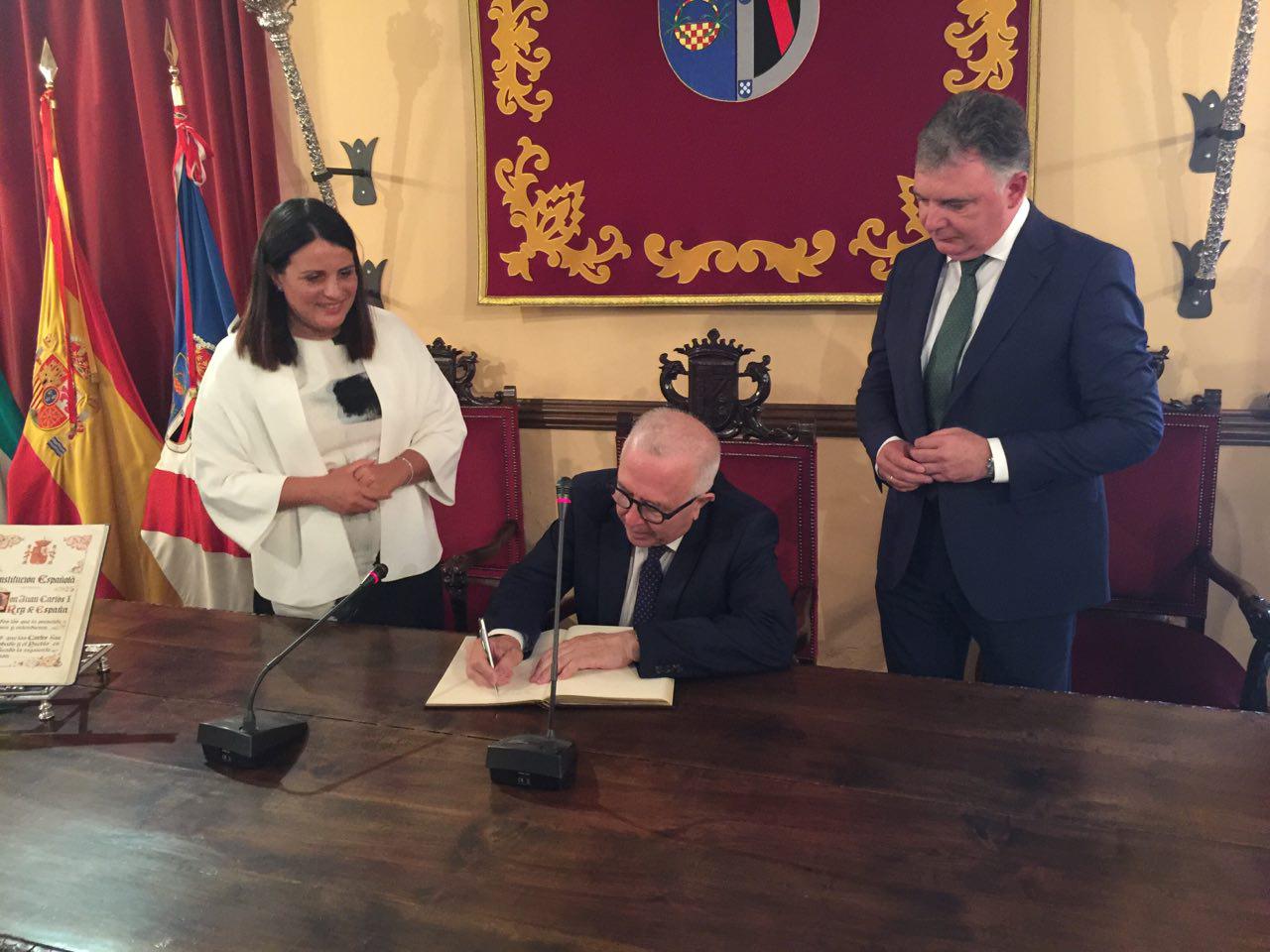 El consejero, firmando en el libro de honor de Almonte