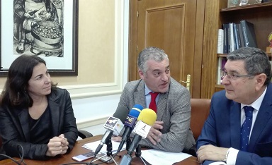 El consejero de Empleo, Empresa y Comercio, Javier Carnero; el director del Programa de Lanzaderas de Empleo en Fundación Santa María la Real, Álvaro Retortillo Osuna; y el director de Relaciones Institucionales de Fundación Telefónica, Joan Cruz, han anunciado en rueda de prensa la puesta en marcha de 29 nuevas Lanzaderas de Empleo en Andalucía para el año 2018. En el acto también han participado, la directora territorial de Telefónica Sur, María Jesús Almazor, y el alcalde de Vélez-Málaga, Antonio Moreno.