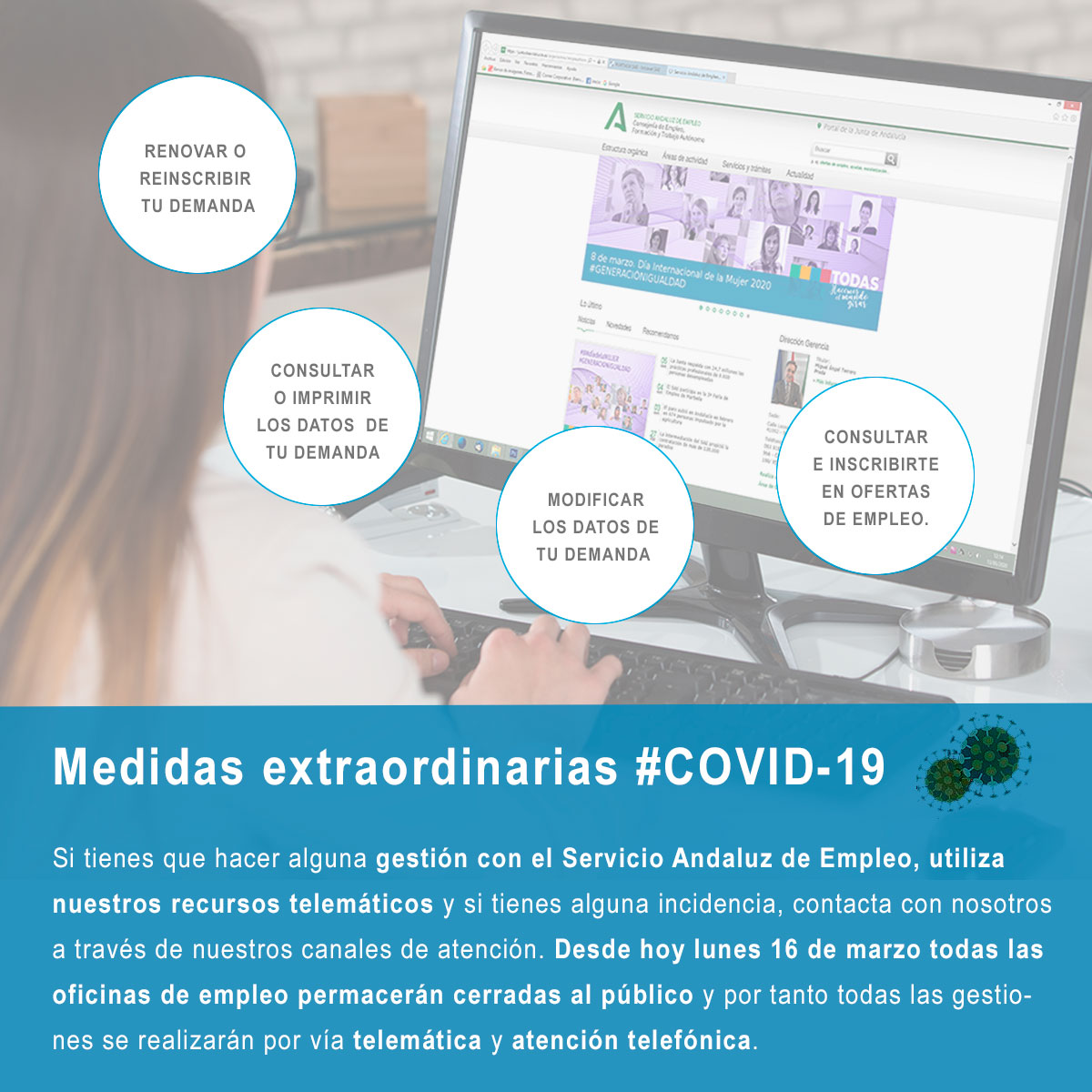 El Servicio Andaluz de Empleo ha adoptado nuevas medidas para facilitar el cobro de las prestaciones por desempleo y eliminar posibles trabas en su tramitación. La medida más importante es que todas las demandas de empleo serán renovadas automáticamente por el SAE. Solo quienes se inscriban por primera vez como demandante de empleo, tendrá que hacerlo a iniciativa propia y llamando a los teléfonos que se han habilitado en las provincias para realizar esta gestión.