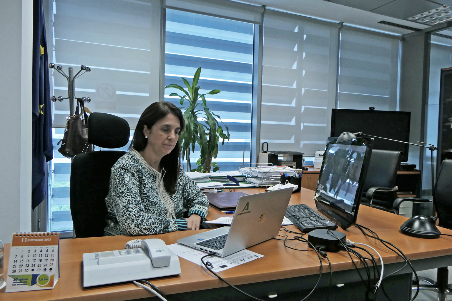 La Coordinadora Territorial de Lanzaderas Conecta Empleo en Fundación Santa María la Real, Nuria Campón; la Responsable en Fundación Telefónica, Susana Gómez; la Secretaria General de Servicio Público de Empleo y Formación y directora gerente del SAE de la Junta de Andalucía, María Victoria Martín-Lomeña; la Concejala de Juventud y Formación del Ayuntamiento de Andújar, Teresa Fernández-Pacheco; la Concejala de Empleo, Juventud y Emprendimiento del Ayuntamiento de Granada, Sandra Rodríguez, y la Concejala Delegada de Formación para el Empleo, Fomento y Desarrollo Empresarial del Ayuntamiento de Lucena, Teresa Alonso, han mantenido esta mañana una videoconferencia con personas participantes de las Lanzaderas Conecta Empleo de Andújar, Granada y Lucena.