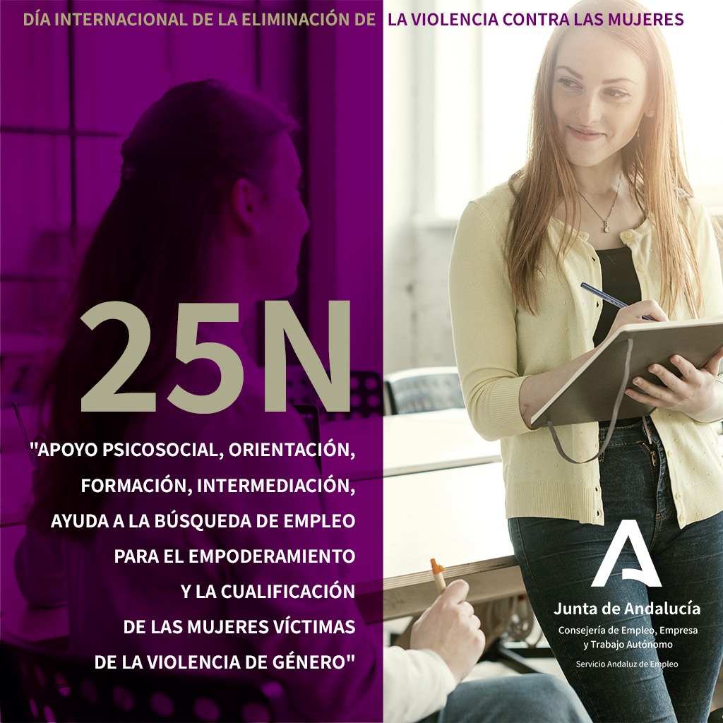 El Servicio Andaluz de Empleo de la Consejería de Empleo, Empresa y Trabajo Autónomo de la Junta ha atendido desde marzo de 2022 a alrededor de 1.688 mujeres víctimas de violencia de género, en las unidades provinciales de atención integral y acompañamiento para la inserción sociolaboral que este organismo tiene en marcha, para mejorar las competencias personales y profesionales y el posicionamiento laboral de este grupo de población.