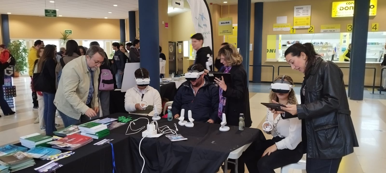 Desde este espacio, se ha ofrecido la oportunidad a las personas que han visitado este congreso de probar el proyecto de simulador de realidad virtual desarrollado para mejorar las competencias personales en la búsqueda de empleo.