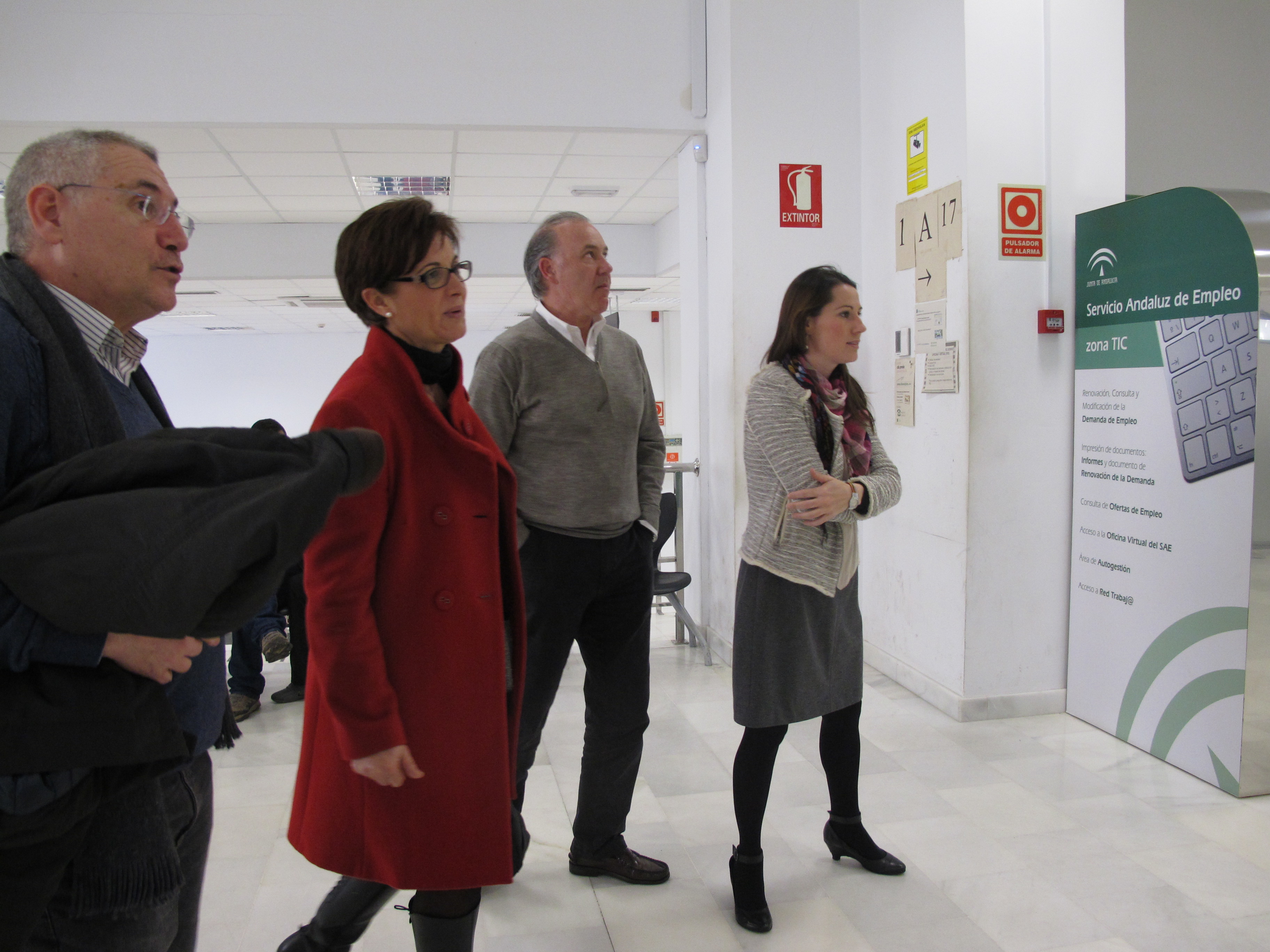 La delegada territorial de Economía, Innovación, Ciencia y Empleo en una visita a la oficina SAE de El Ejido, junto a técnicos del SAE.