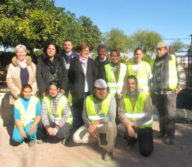 Adriana Valverde, que ha estado acompañada durante la visita por María González Martínez, alcaldesa de Los Gallardos, ha mantenido un encuentro con siete de los 14 jóvenes de entre 18 y 29 años contratados en el marco de Emple@Joven gracias a una ayuda de 54.816 euros de la Junta de Andalucía, y que están llevando a cabo tareas de rehabilitación y mantenimiento de parques y jardines.