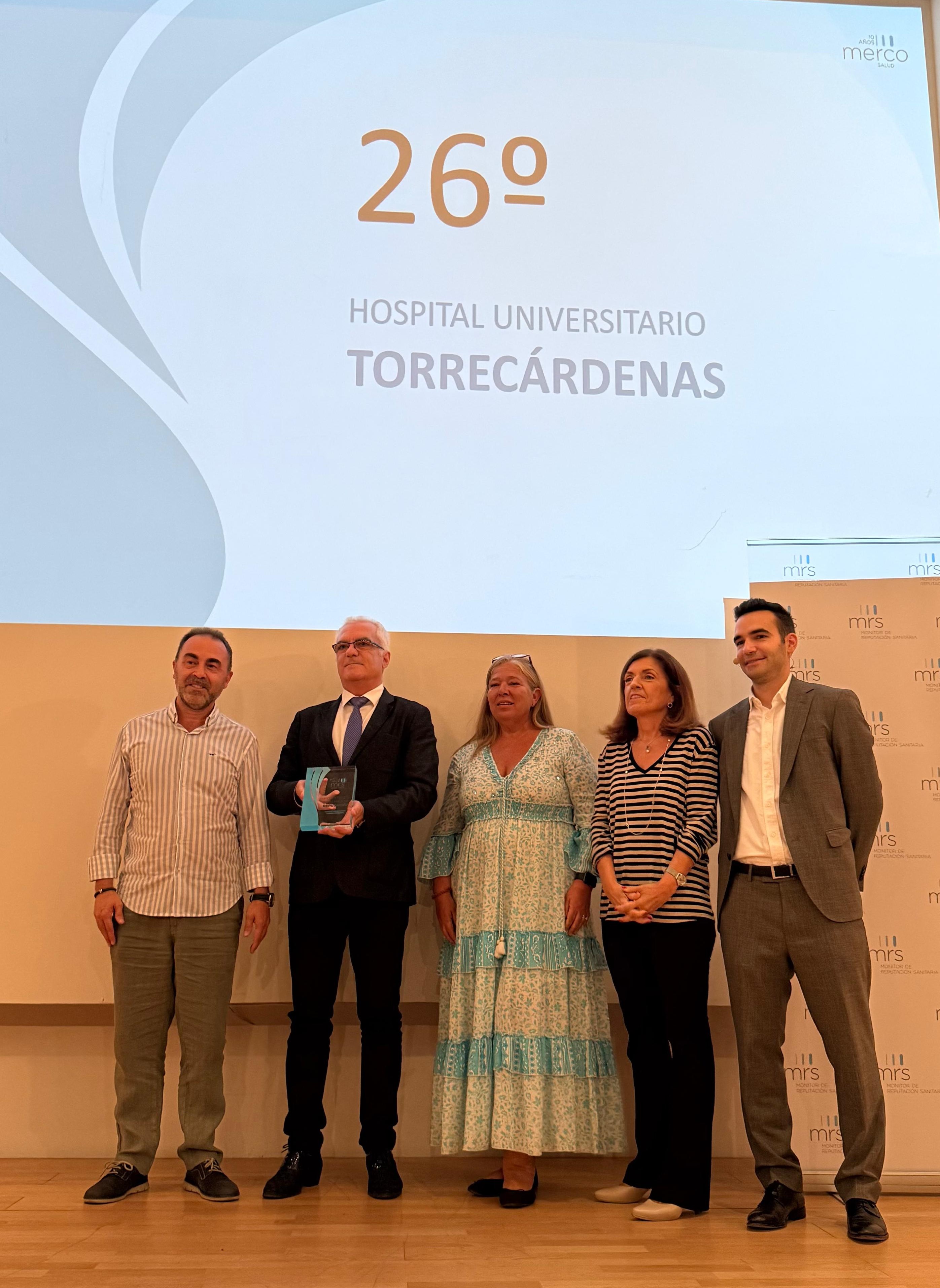 El Hospital Universitario Torrecárdenas se ha situado como en el puesto 26 del ranking de los hospitales de España con mayor reputación sanitaria según el estudio del Monitor de Reputación Sanitaria MRS, subiendo cuatro puestos desde la edición del año pasado (2024) y escalando diez posiciones en los últimos cinco años, ya que en 2020 obtuvo el puesto 36.