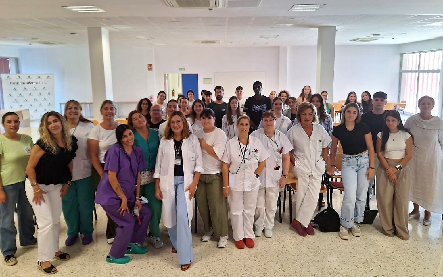 En palabras de la directora gerente del Hospital Infanta Elena, Esperanza Quintero, “la formación no es solo una responsabilidad, ha explicado, sino una oportunidad. Necesitamos profesionales bien preparados en todas las categorías, porque cada una de ellas es esencial para el funcionamiento de un hospital. Recibir a estos alumnos nos aporta un soplo de aire fresco; su mirada nueva nos obliga a revisar lo que hacemos, a explicar por qué lo hacemos así y, muchas veces, a mejorar juntos. Ellos aprenden de nosotros, pero también nosotros aprendemos de ellos”.