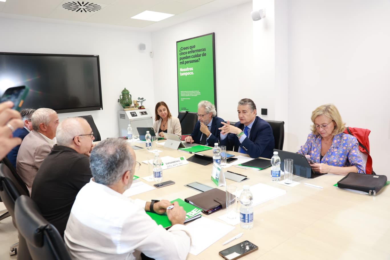 El consejero de Sanidad, Presidencia y Emergencias, Antonio Sanz, ha mantenido esta tarde un encuentro con el secretario general del Sindicato de Enfermería (Satse), José Sánchez Gámez, acompañado por miembros del equipo directivo del sindicato, que se ha desarrollado en un clima de cordialidad, escucha activa y voluntad de colaboración.