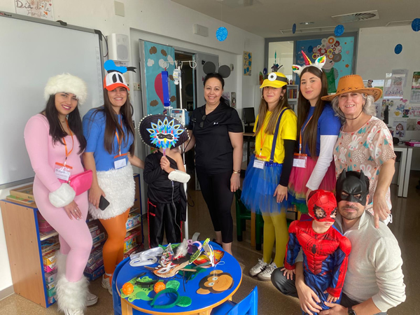 El aula hospitalaria y el área de hospitalización de Pediatría se han convertido en una fiesta de disfraces gracias a la colaboración del alumnado del Centro de Formación Profesional La Inmaculada y a la participación de niños y niñas, madres y padres, así como profesionales del hospital.