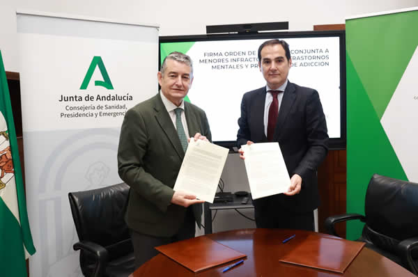 El consejero de Sanidad, Presidencia y Emergencias, Antonio Sanz; y el consejero de Justicia, Administración Local y Función Pública, José Antonio Nieto, han firmado una orden que incluye un protocolo de coordinación para asegurar la continuidad de los cuidados de los menores infractores con trastornos mentales y problemas de adicción, especialmente cuando acaban las medidas que deben cumplir en los centros y recursos de Justicia Juvenil.