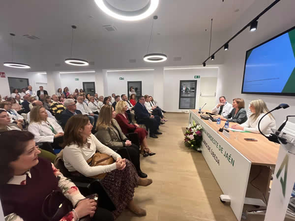 La cita, que ha tenido lugar en el salón de actos del centro, ha contado con la presencia de la directora gerente del Servicio Andaluz de Salud, Valle García, y la delegada territorial de la Consejería de Sanidad en Jaén, Elena González.