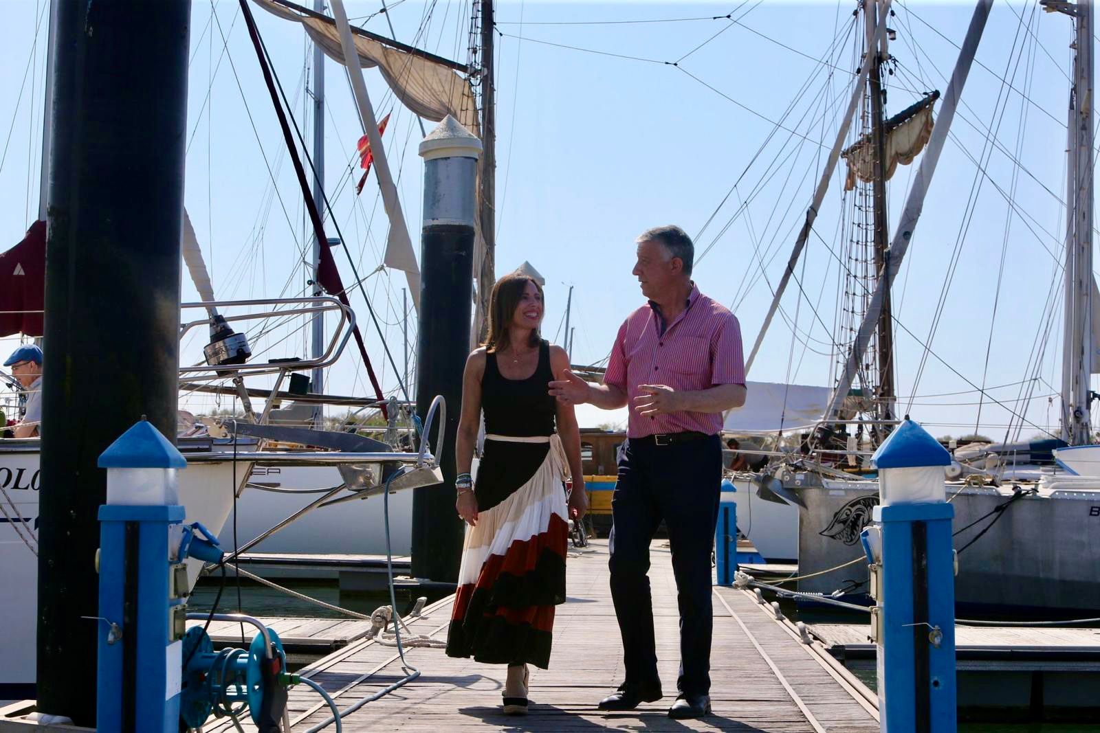 Rocío Díaz visita el puerto de Mazagón junto al alcalde de Palos.