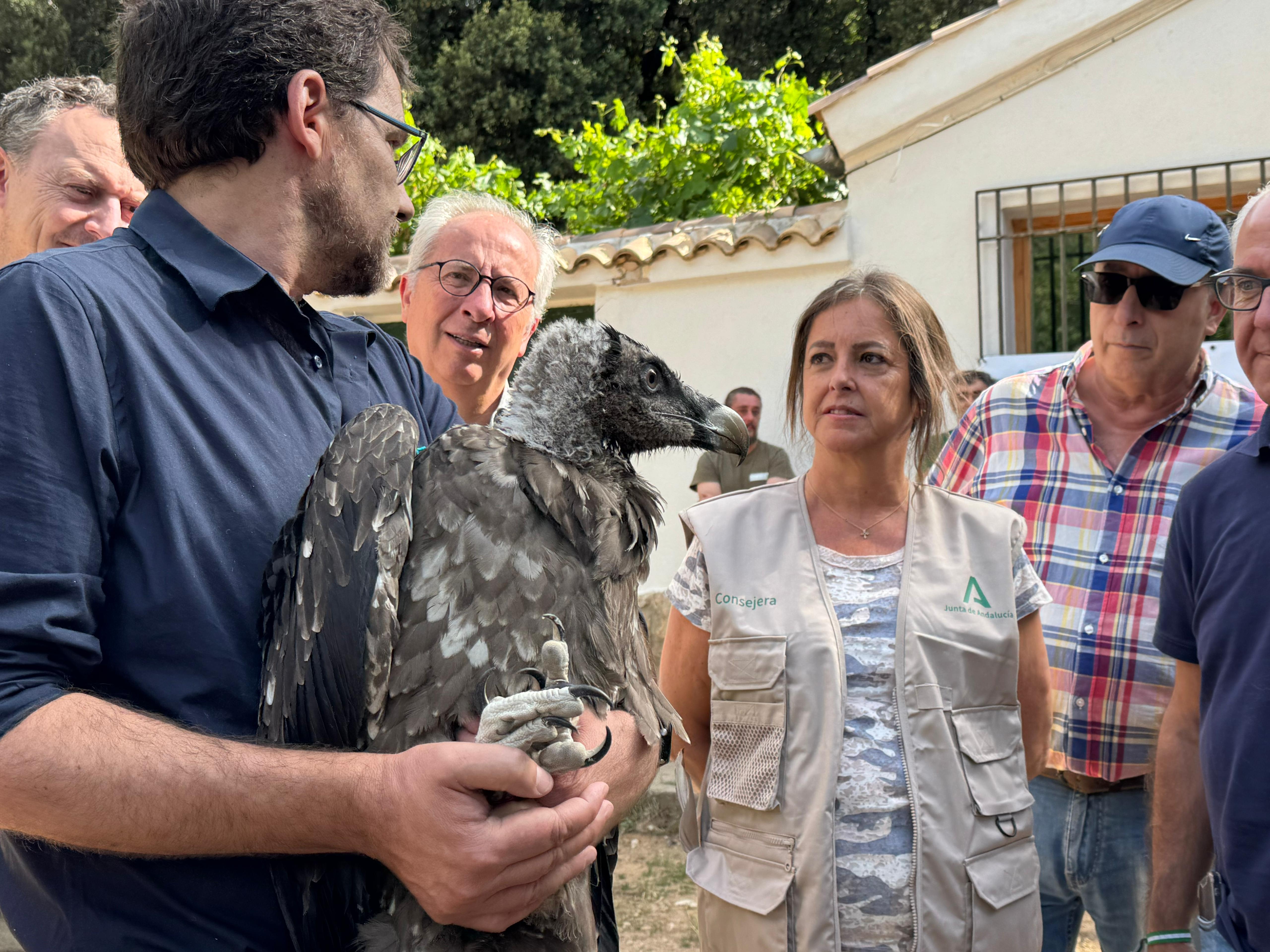 La consejera de Sostenibilidad y Medio Ambiente de la Junta de Andalucía, Catalina García, ha participado esta mañana en la preparación y suelta del último ejemplar de quebrantahuesos que se liberará esta temporada. Se trata de una hembra que procede del Pirineo aragonés y cuyo desarrollo ha tenido lugar en el Centro de Cría de Guadalentín, en el Parque Natural Sierras de Cazorla, Segura y Las Villas, que este lunes ha sido visitado por la consejera.