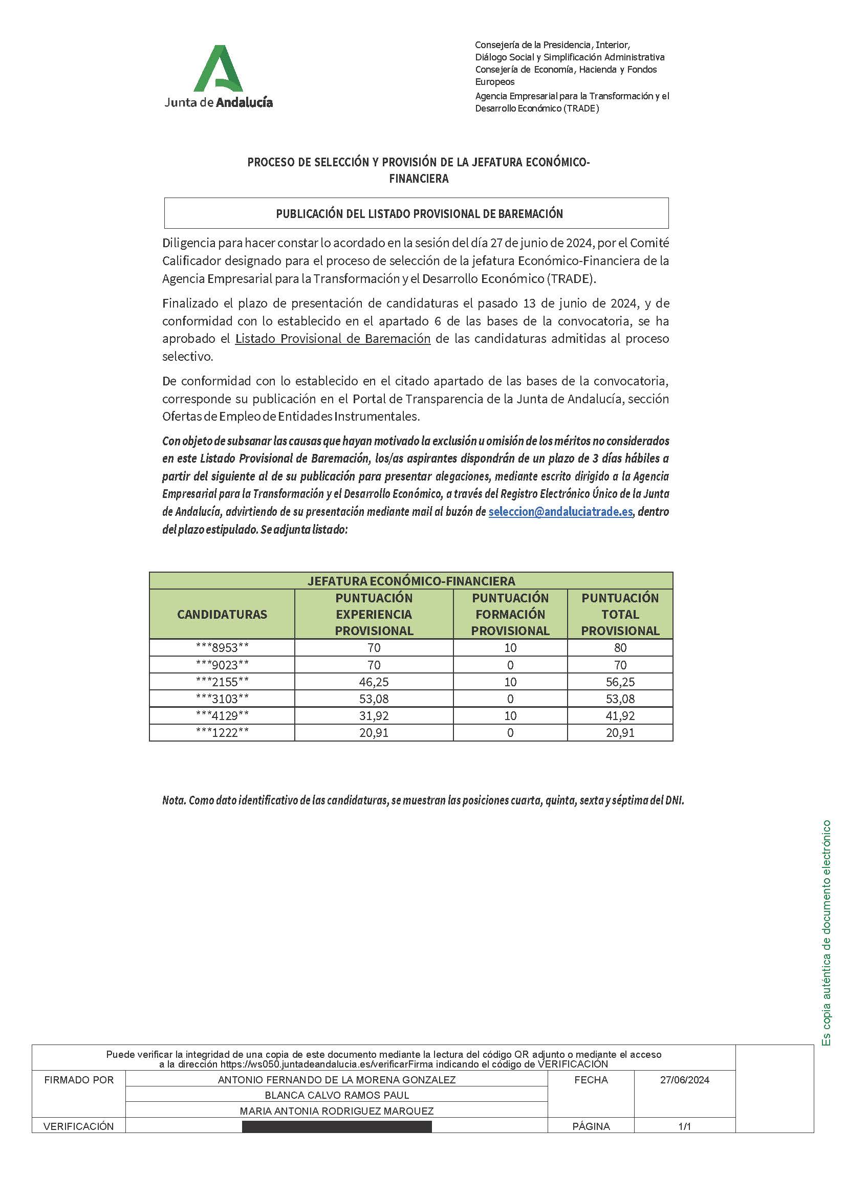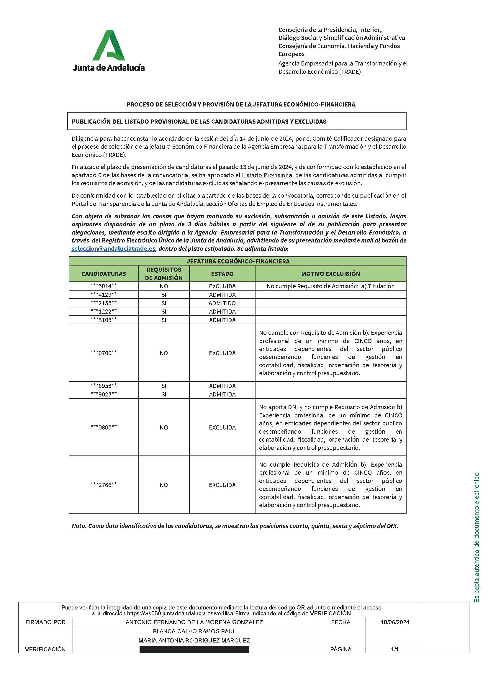 Oferta de empleo - Jefatura Económico-Financiera de la Agencia Empresarial para la Transformación y el Desarrollo Económico (TRADE)