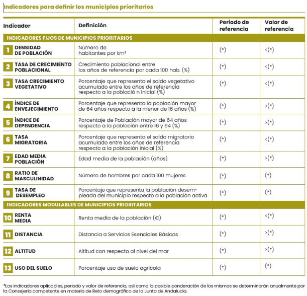 - Municipios en los que no se establece esta prioridad en la actualidad: son aquellos que no cumplan al menos dos de los indicadores expuestos.