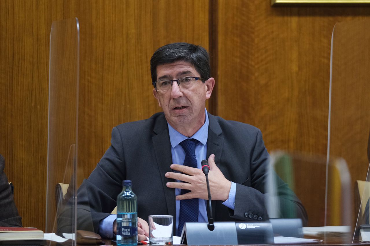 El vicepresidente de la Junta de Andalucía y consejero de Turismo, Regeneración, Justicia y Administración Local, Juan Marín, ha cifrado hoy en un 79,26% la ejecución a mes de octubre de los presupuestos de 2020 para su consejería. “Se trata de una ejecución atípica ya que tenemos que tener en cuenta la paralización de los plazos administrativos mientras estuvo decretado el estado de alarma y la remisión de 12 millones de euros para los fondos COVID”.