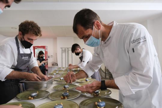 El chef Julio Fernández Quintero del restaurante Abantal, en la preparación de uno de los platos del Menú V Centenario.