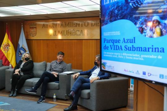 El vicepresidente de la Junta y consejero de Turismo, Regeneración, Justicia y Administración Local, Juan Marín, ha presentado hoy en Almuñécar el proyecto Parque Azul Vida Submarina, que va a desarrollar la localidad y que ha considerado como “una iniciativa innovadora, que permitirá diferenciar el destino y que de la mano de la sostenibilidad pondrá en marcha un nuevo recurso turístico con el que el municipio podrá avanzar hacia la desestacionalización de su oferta”.