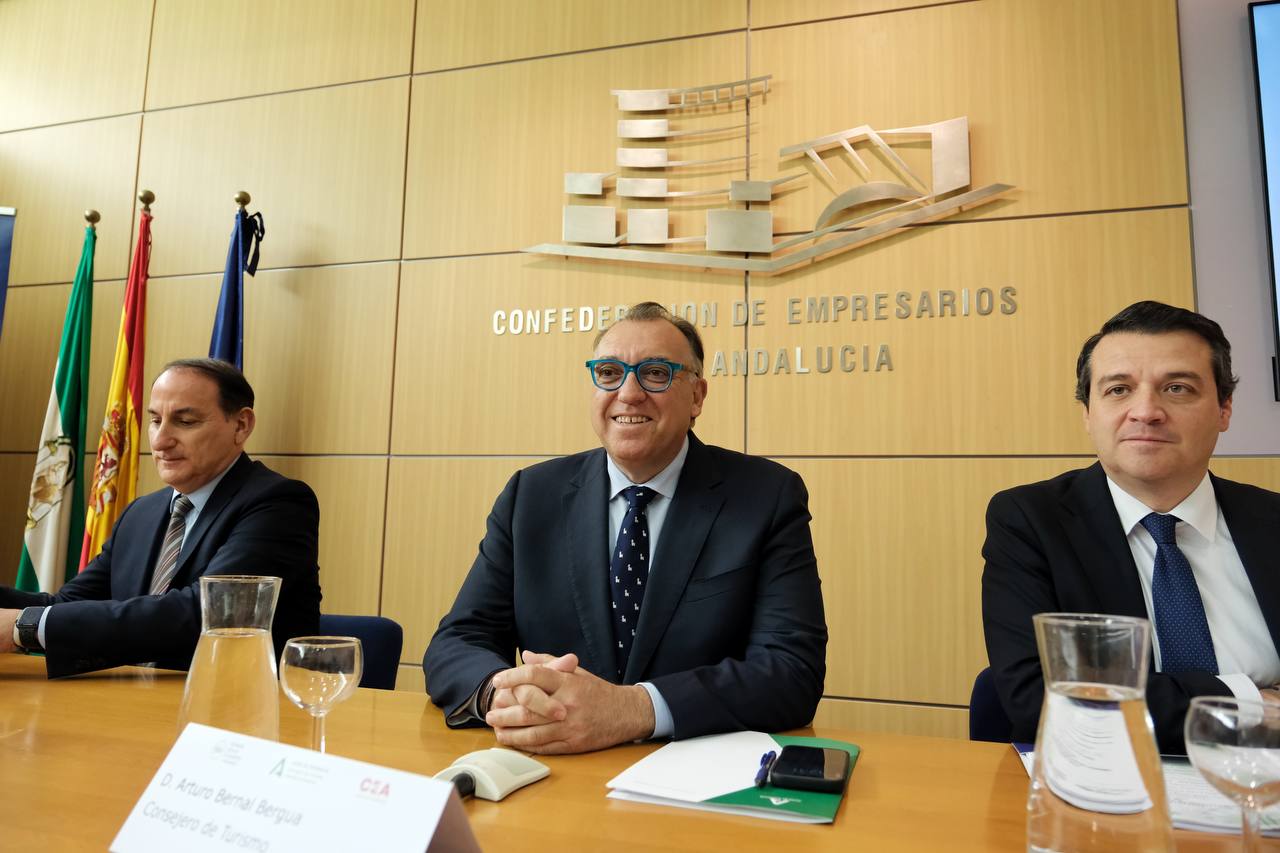 El acto, celebrado en la sede de la CEA en Sevilla, ha contado con el consejero de Turismo y Andalucía Exterior, Arturo Bernal; el presidente de la FAMP y alcalde de Córdoba, José María Bellido, y el presidente de la CEA, Javier González De Lara, así como los técnicos que han presentado a prensa los indicadores definidos y las principales conclusiones.