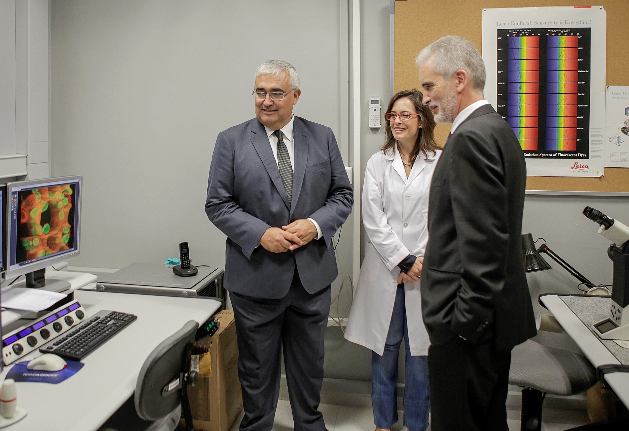 Asimismo, ambos representantes del Gobierno andaluz han realizado un recorrido por las instalaciones de Cabimer, durante el cual han podido conocer de la mano de los propios investigadores las principales líneas de investigación de este centro de investigación, multidisciplinar en biomedicina, y pionero en España, ya que integra la investigación básica y aplicada con la finalidad de traducir los resultados de los trabajos científicos en mejoras directas en la salud y en la calidad de vida de los ciudadanos.